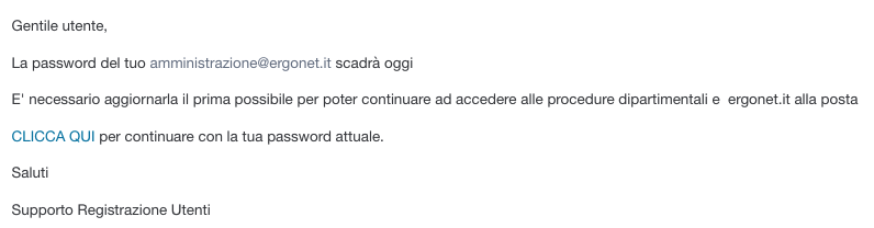 Oggetto della email: La password del tuo ....... scadrà oggi